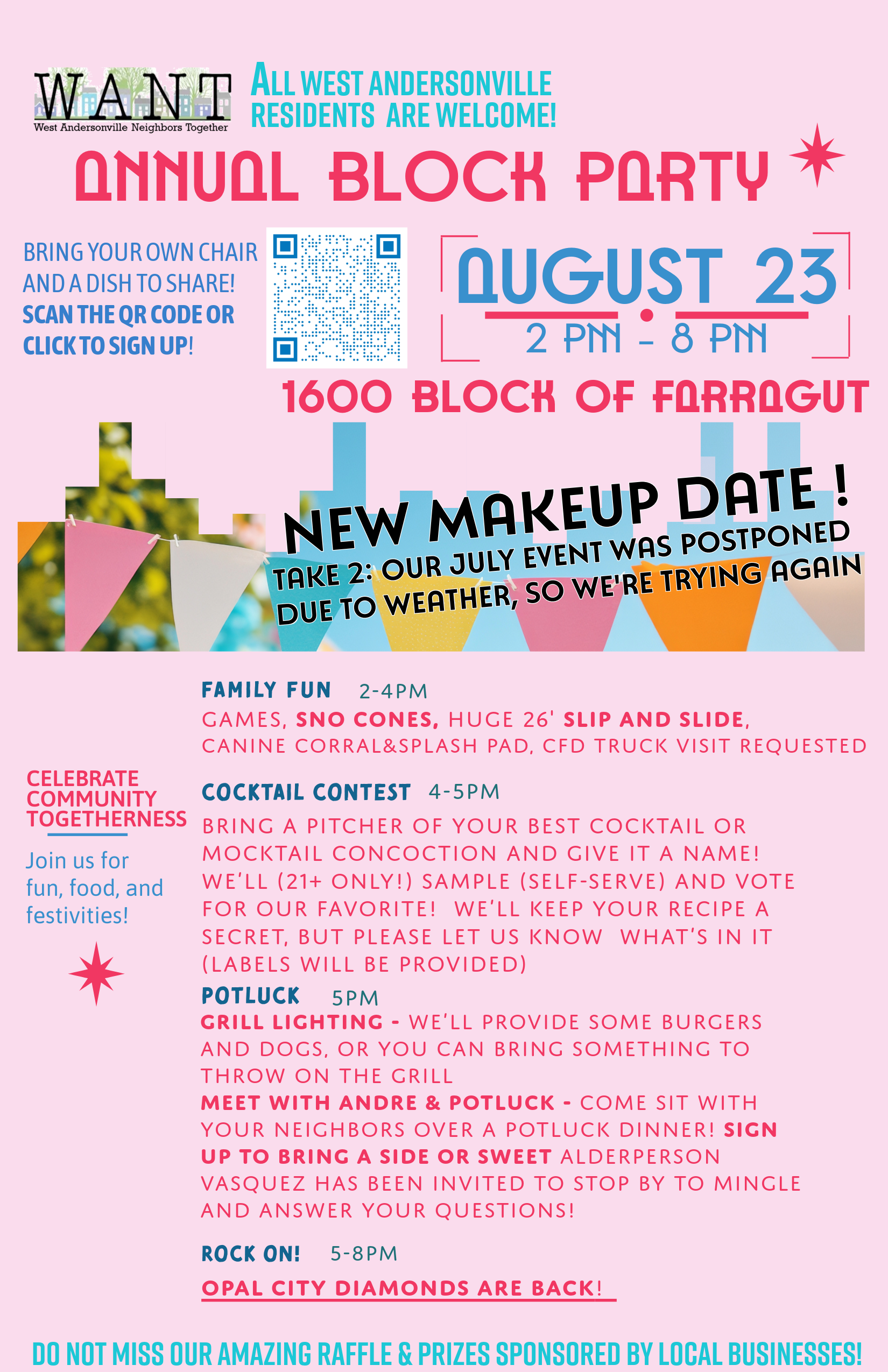 Let’s Try this Again: Aug 23rd! Aug 2 Written By WANT Blockclub We unfortunately had to postpone our July event, so we’ve got a new date and have rescheduled for August 23rd. Please join the fun on this new date! WANT Blockclub